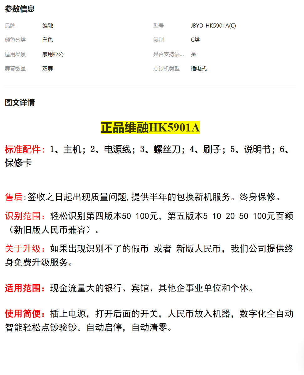商家案例-维融5901A点钞机 - 商品预览