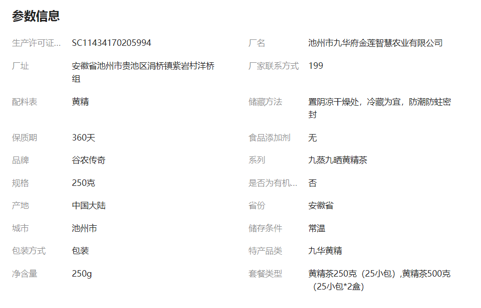 商家案例-黄精茶250g独立小包装 - 商品预览